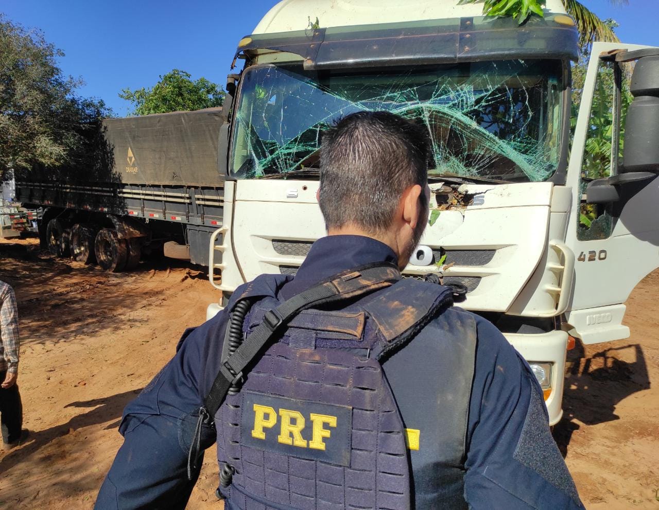 Por volta das 4h, a equipe deu ordem de parada ao motorista da carreta na BR-487, ele fugiu sentido Alto Paraíso. Já na cidade de Xambrê, colidiu contra uma árvore em frente a uma residência, abandonou o veículo e fugiu a pé para o mato. Ele não foi localizado.