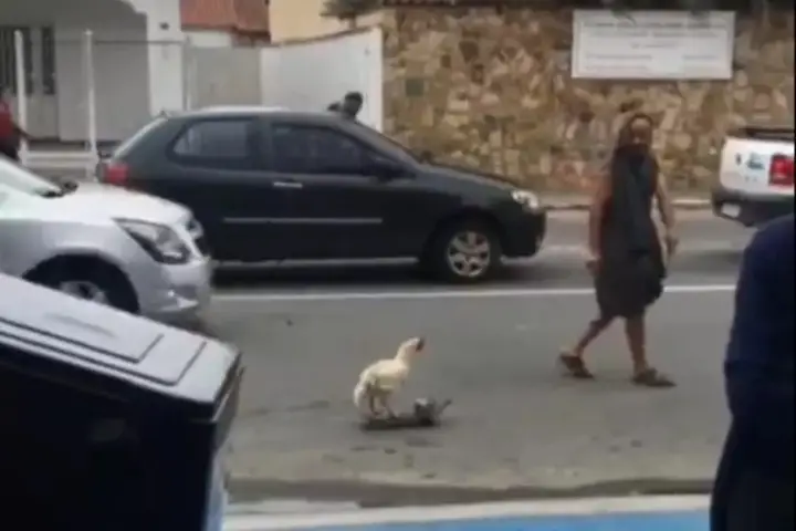 No vídeo, é possível ver o animal em cima do skate que está sendo puxado pelo tutor com o auxílio de uma corda, em uma espécie de “trenó”. O rapaz ainda justifica a ação: “Ele não consegue andar, então dei um jeito”, explicou.