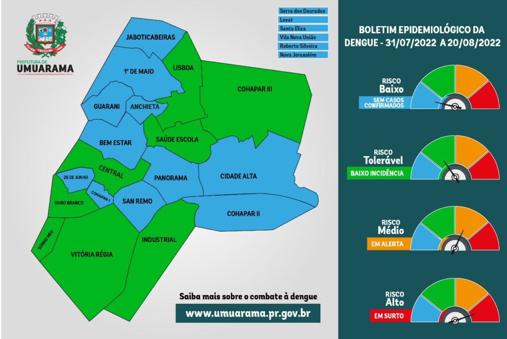 Nos seis distritos pertencentes a Umuarama (Serra dos Dourados, Lovat, Santa Eliza, Vila Nova União, Nova Jerusalém e Roberto Silveira) também não nenhum caso de dengue confirmado.