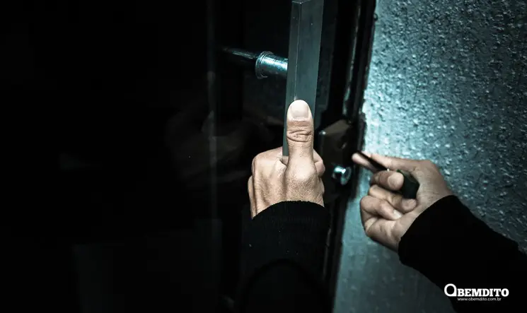 A ocorrência foi registrada após denúncias anônimas via 190 que o suspeito estaria tentando arrombar a porta do estabelecimento. Ao chegar no local, os policiais encontraram a porta violada e com sinais de invasão.