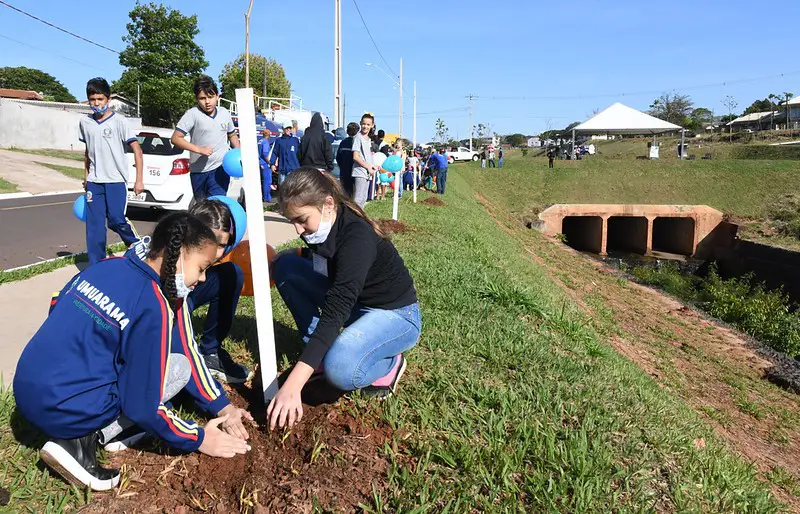 No Dia do Campo Limpo, alunos de Umuarama ajudam no plantio de 220 mudas de ipê amarelo