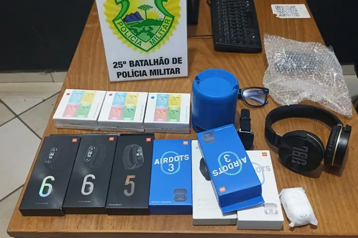 Por volta das 5h30 desta quarta-feira (24), policiais militares do 25º Batalhão prenderam em flagrante um homem, de 29 anos, e uma mulher, de 24, que invadiram uma loja de eletrônicos no centro de Umuarama e furtaram vários produtos do local.