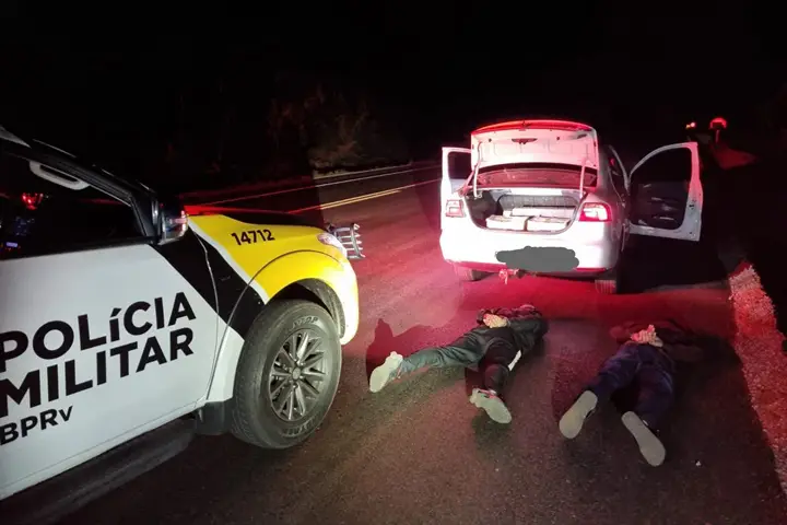 De acordo com as informações da Polícia Militar Rodoviária (PMRv), a tentativa de abordagem aconteceu após o veículo ignorar a ordem de parada obrigatória no posto policial de Iporã. Os suspeitos tentaram fugir após alguns quilômetros de perseguição pela rodovia, porém acabaram sendo interceptados pelas viaturas.