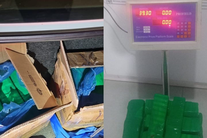 No porta malas do veículo, os policiais encontraram duas caixas de papelão com 55 tabletes de maconha que juntos somavam 39,3 quilos da droga.