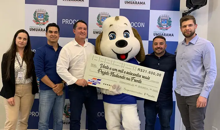 A fim de reforçar seu compromisso social com Umuarama, a rede de supermercados Planalto doou recentemente o total de R$ 43.200 ao projeto social “Nadando na Frente”. Este projeto visa dar oportunidade para crianças carentes para que elas possam praticar um esporte olímpico que não é tão acessível para a maioria das famílias: a natação.