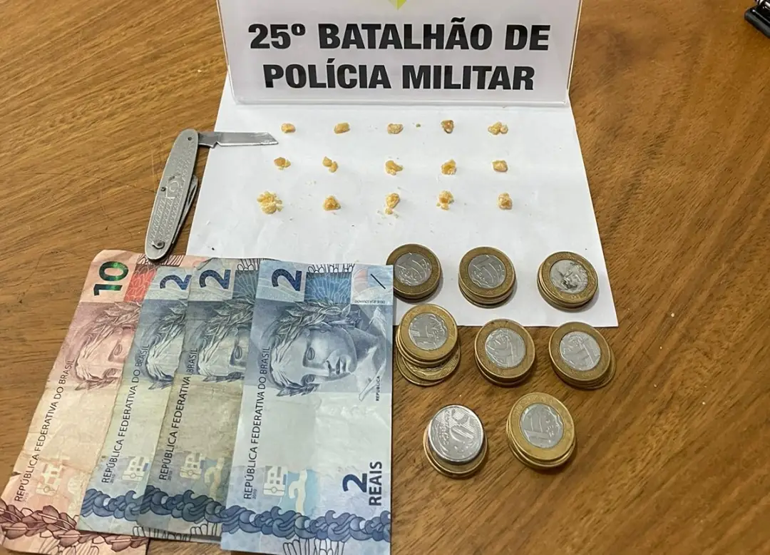 Os policiais foram até o homem e o abordaram. Foram localizadas 15 pedras de crack prontas para comercialização e dinheiro.