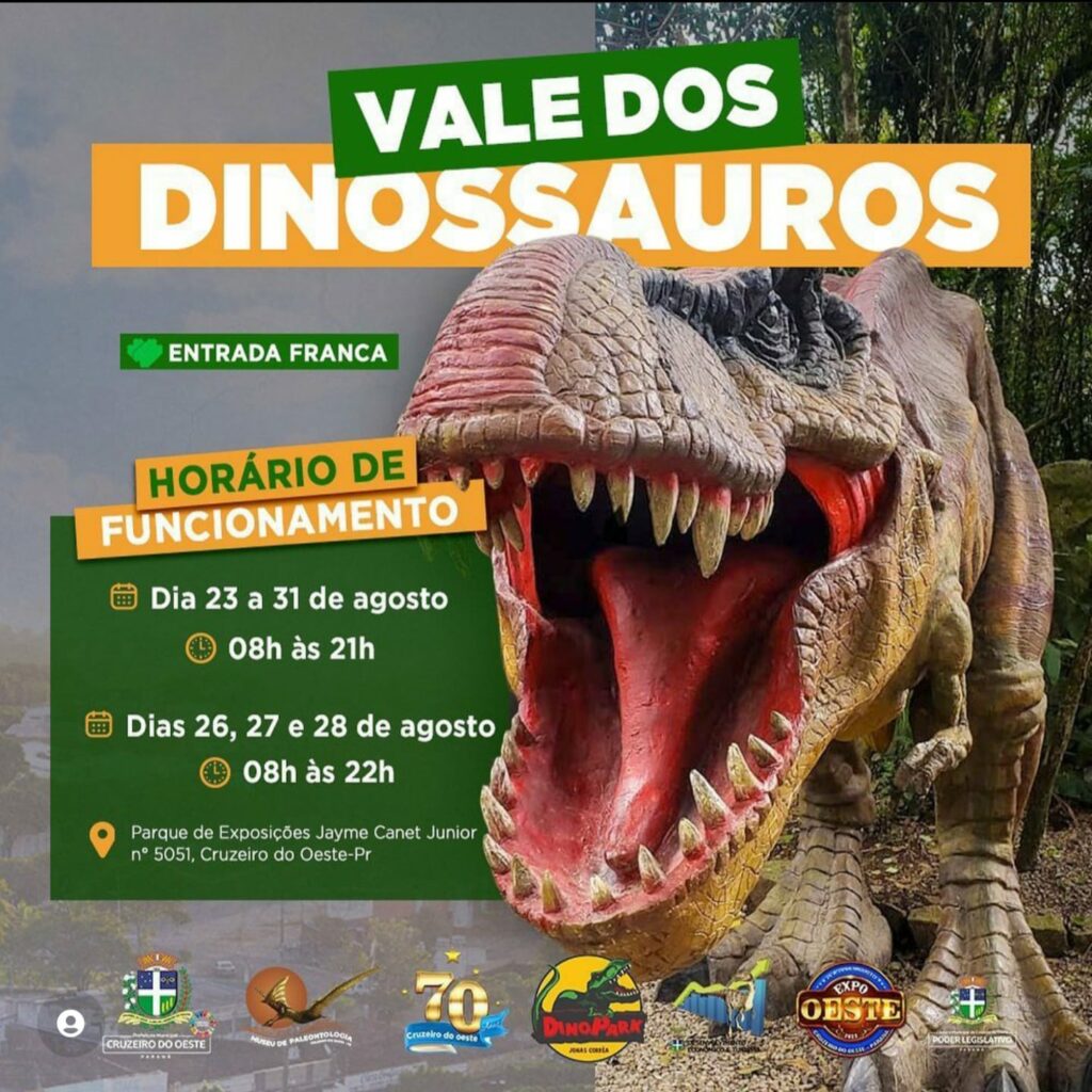 Como parte da grade de programação que comemora o 70º aniversário da cidade, o “Vale dos Dinossauros” de Cruzeiro do Oeste está reunindo visitantes de toda a região com diversas exibições e até réplicas de dinossauros em tamanhos reais.