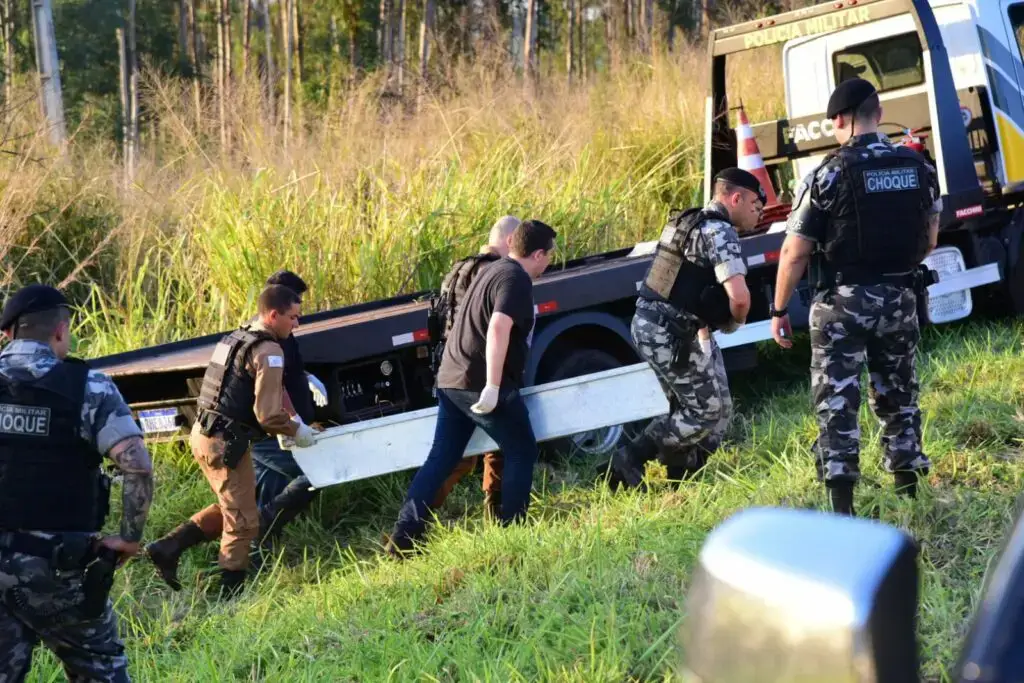 Um cerco foi montado na PR-323 em Lovat, onde o condutor do automóvel ignorou a ordem de parada e deu início a uma perseguição policial em alta velocidade, que teve fim quando o jovem entrou com com veículo em um matagal próximo à entrada de Umuarama.