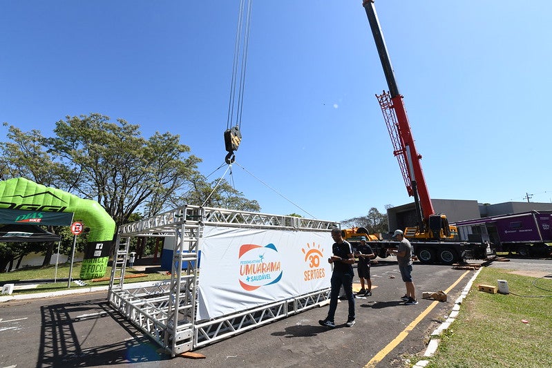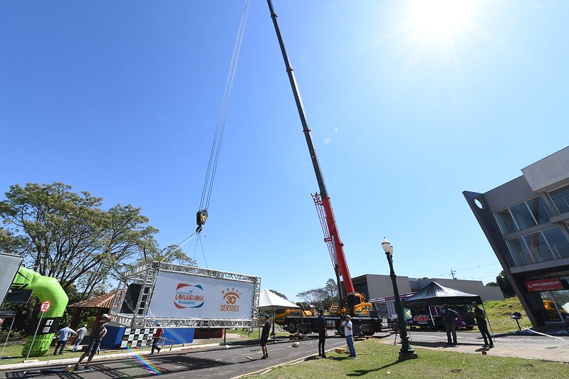 Rally dos Sertões: Guindaste montado no Lago Aratimbó promete emoção a 45 metros de altura