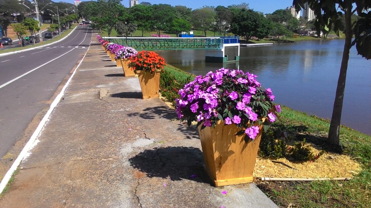 Quem passa pelo Lago Aratimbó logo percebe uma pequena (mas significativa) mudança. As flores da estação, que antes eram plantadas no chão, ao lado da calçada da avenida Paraná, agora ganharam um ar mais organizado, em vasos revestidos de cachopôs.