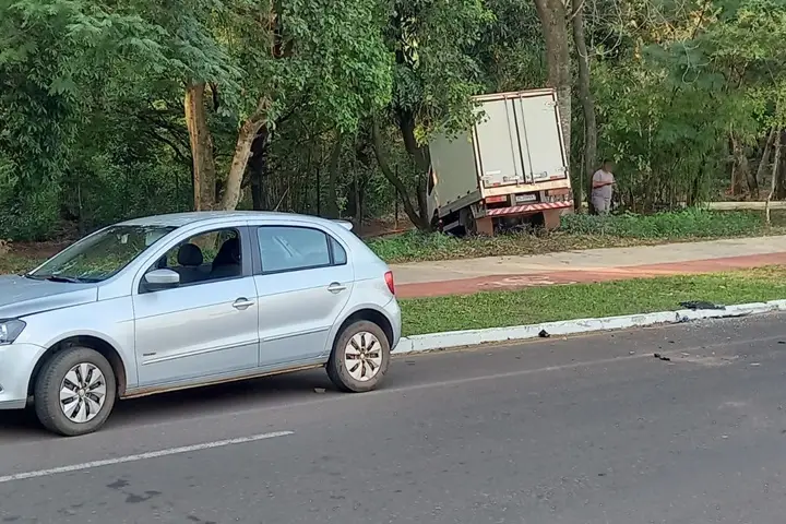 Um caminhão desgovernado acabou saindo da avenida Governador Parigot de Souza e invadindo o espaço do Bosque dos Xetás, em Umuarama, na manhã desta segunda-feira (29).
