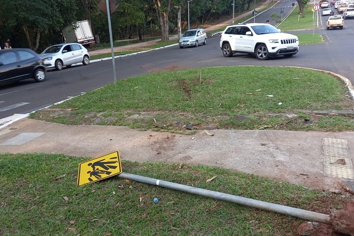 Foi então que para evitar a colisão e desviar de uma Honda Biz em seu caminho, o condutor jogou o automóvel para o outro lado da pista, que cruzou a avenida derrubando uma placa de trânsito e colidindo contra um automóvel Gol que seguia em sentido contrário.