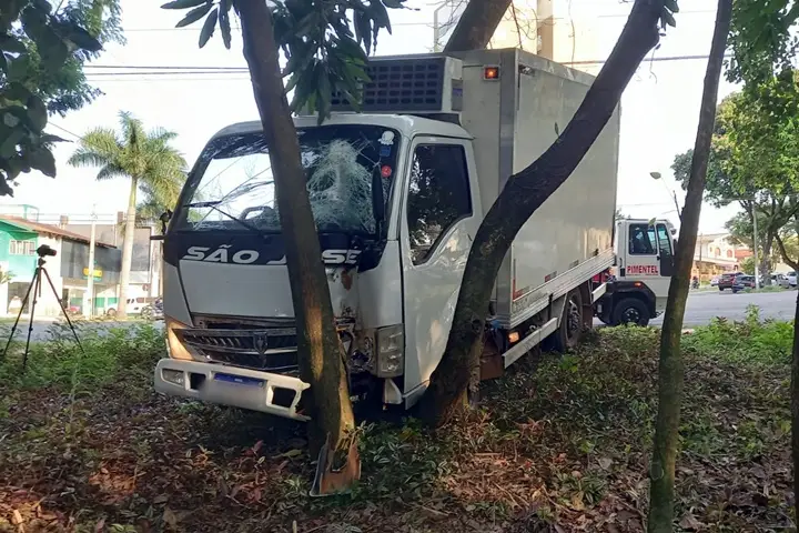 Na manhã desta segunda-feira (29), um caminhão desgovernado invadiu a preferencial da avenida Governador Parigot de Souza, colidiu contra um automóvel e se chocou contra uma árvore do Bosque dos Xetá, em Umuarama. A situação foi decorrente de uma “fechada” que o condutor levou de um automóvel na pista.