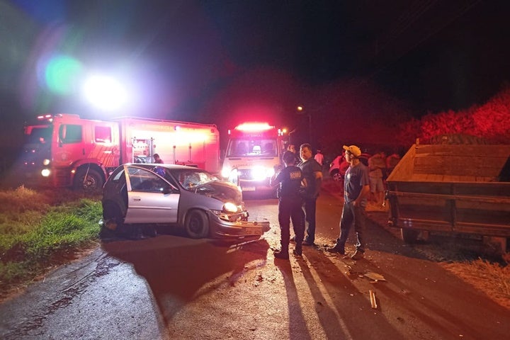 O Samu (Serviço de Atendimento Móvel de Urgência) e o Corpo de Bombeiros atenderam vítimas de uma colisão entre um automóvel e um trator na estrada Mestre, em Altônia, na noite desta segunda-feira (29).