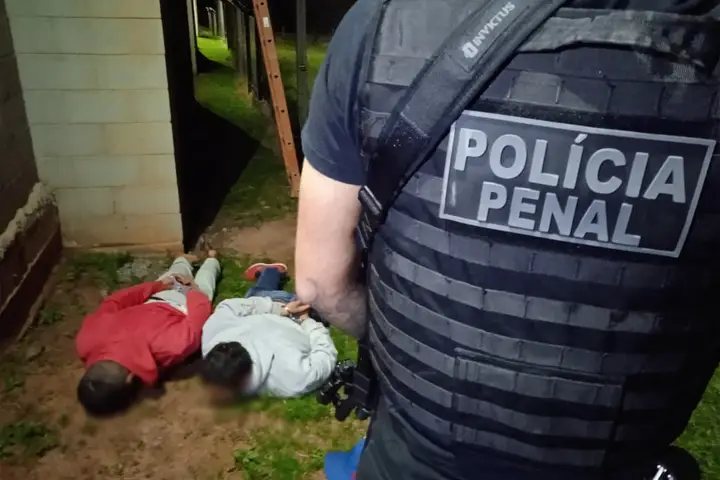 Dois homens foram presos, na madrugada desta terça-feira (30), após serem flagrados em uma escada na muralha da Penitenciária Estadual de Cruzeiro do Oeste (Peco) aparentemente tentando realizar uma invasão para entrega de materiais ilícitos para detidos da unidade.