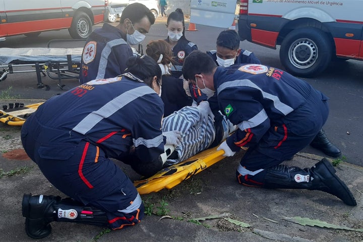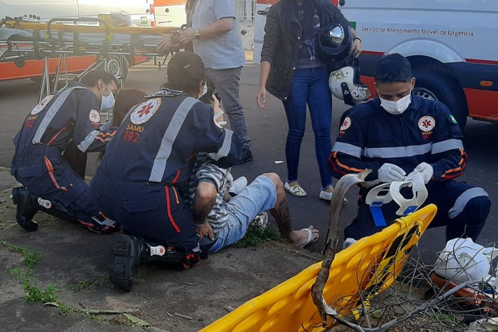 A equipe do Samu foi acionada para socorrer os ocupantes da moto que, a princípio, tiveram apenas escoriações. A Polícia Militar foi chamada para registrar a ocorrência.
