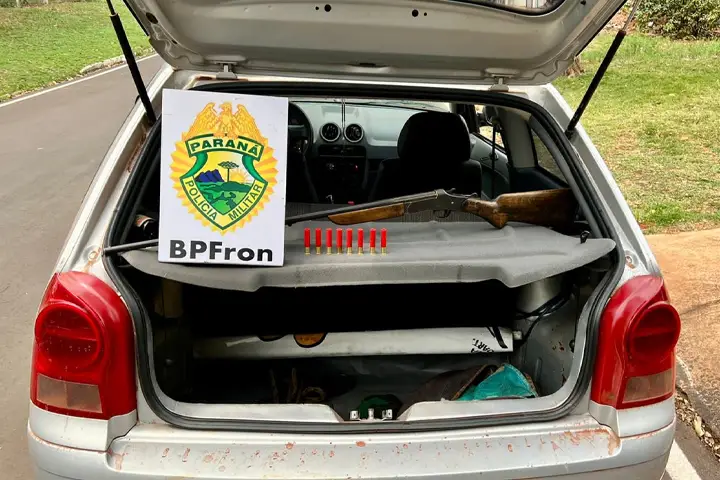 A equipe realizava patrulhamento pela área urbana da cidade quando foi dada voz de abordagem ao condutor de um veículo VW/Gol. No veículo, ocupado por dois indivíduos, foram localizados uma espingarda calibre 36 e 8 cartuchos (do mesmo calibre).