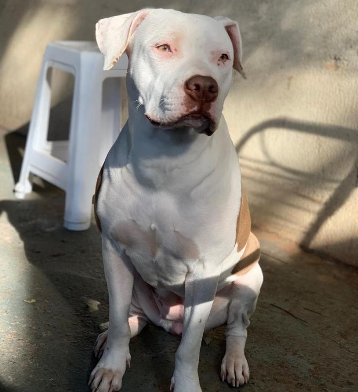 Conforme o tutor, o desaparecimento ocorreu por volta das 20h. A Safira é uma Pitbull de aproximadamente 2 anos e meio. E está no cio.