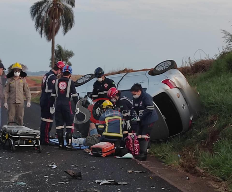 Duas pessoas ficaram feridas no choque entre um Corsa e um Gol no início da manhã deste domingo (4). O acidente aconteceu na PR-082, no trecho conhecido como Trevo do Bigão, entre as cidades de Cianorte e Indianópolis.