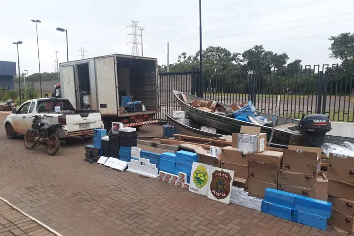 No local foram apreendidos diversos volumes com produtos eletrônicos e produtos contrabandeados como anabolizantes e agrotóxicos, dois barcos de alumínio, um equipado com um motor 40HP Yamaha e o outro com um motor 50HP Mercury, uma GM/Montana, uma Iveco/Cargo e uma moto Honda/CG.