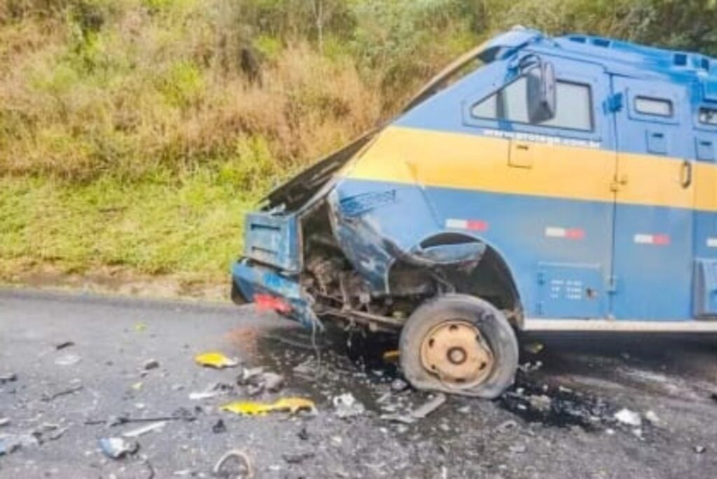 Segundo informações da Polícia Rodoviária, o soldado que conduzia a viatura ficou preso nas ferragens da viatura, após bater de frente com um carro de transporte de valores.
