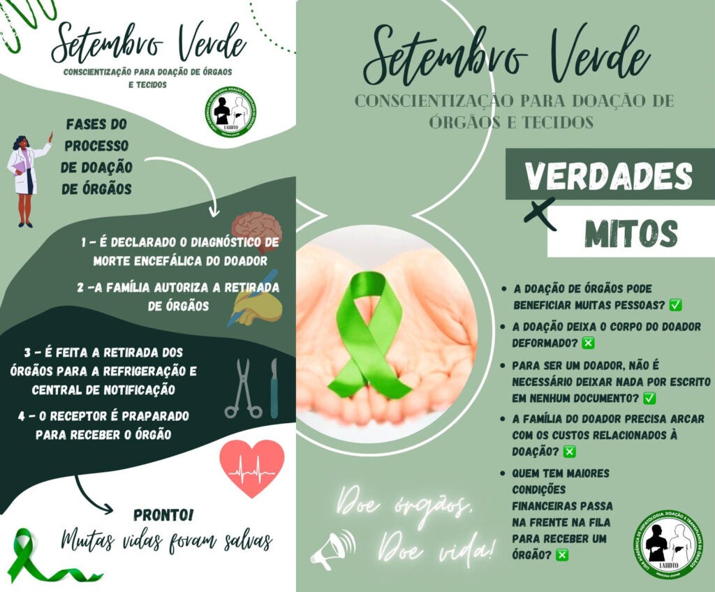 A campanha Setembro Verde busca alertar a população sobre a importância da doação de órgãos. A cor foi escolhida por simbolizar a esperança pelo ‘renascimento’ da vida.
