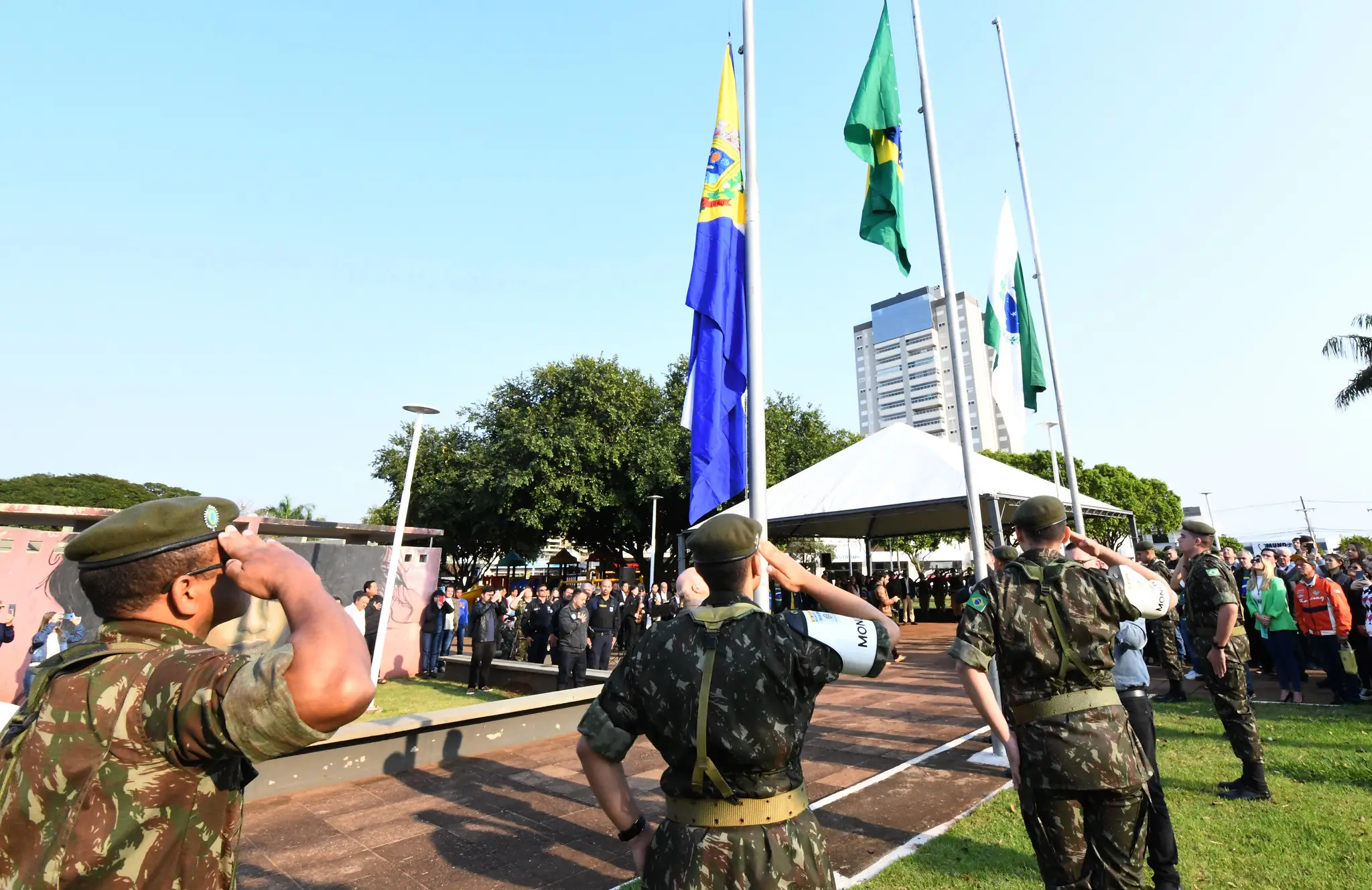 Ainda o comandante do 25º Batalhão da Polícia Militar, major Claudio Longo, e o diretor da Guarda Municipal de Umuarama, inspetor Valdiney Roberto Rissato, além dos alunos da Escola da Polícia Militar do Paraná e dos vereadores Clebão, Sorrisal, Mateus Barreto, Newton Soares e Delegado Colombo.