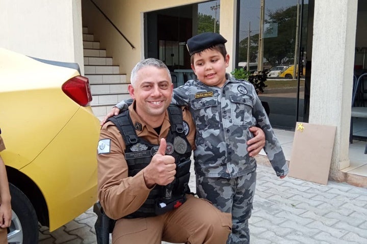 Ao fim, eles ainda tiveram a oportunidade de ver e passear em uma viatura do batalhão vestidos com a farda militar. Ao fim os policiais aproveitaram e encerraram a tarde com um delicioso café com as crianças.
