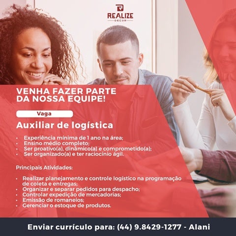 A loja de móveis artesanais Realize Decor está com uma vaga disponível para o cargo de Auxiliar de Logística.