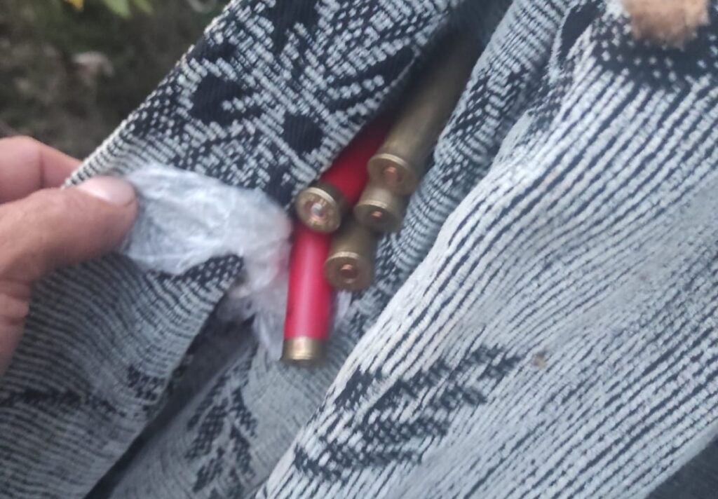A equipe realizou a retirada dos apetrechos de caça e de uma arma de fogo (espingarda marca Rossi cal 0.28 carregada), com mais 5 cartuchos e um estojo deflagrado.