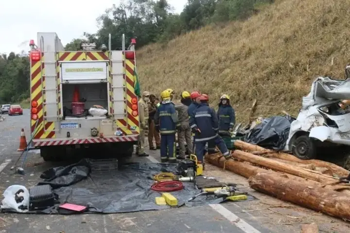 As vítimas, que estavam em um carro da Prefeitura Municipal de Ortigueira, foram atingidas por toras de árvore que se desprenderam de um caminhão com destino à Telêmaco Borba.