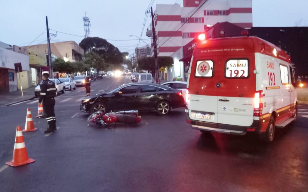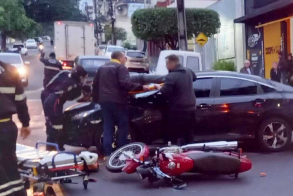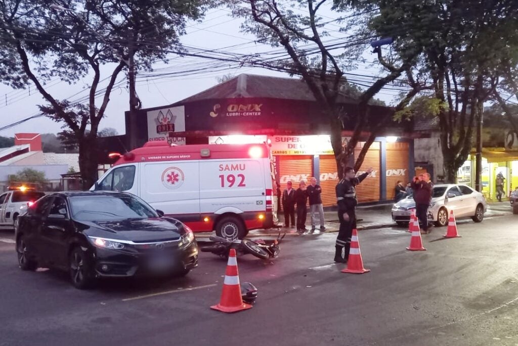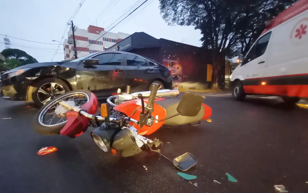 Uma colisão entre um automóvel e uma motocicleta foi registrada por volta das 18h desta quarta-feira (14). O acidente ocorreu no cruzamento das ruas Arapongas e Mandaguari, Zona II de Umuarama.