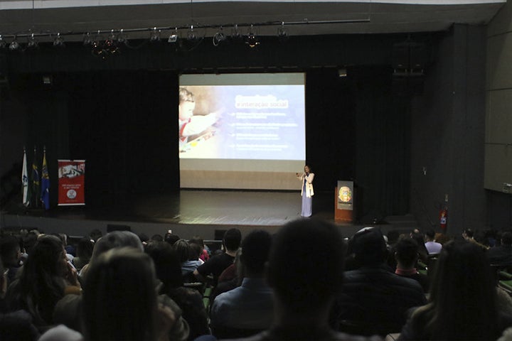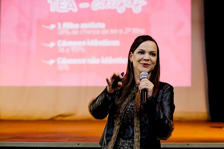Nesse sentido, a palestrante dirigiu-se também aos profissionais de educação e saúde que participavam do evento. “Vocês vão perceber cada vez mais crianças com TEA nas salas de aula, nas unidades de saúde. Não tem volta! Vocês podem ser agentes de transformação na vida dessas crianças e suas famílias. Estude, quebre paradigmas, faça a diferença!”, disse a pediatra.