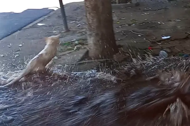 Assim que foi jogada a água, o animal já saiu correndo do local, sem nenhum ferimento aparente.