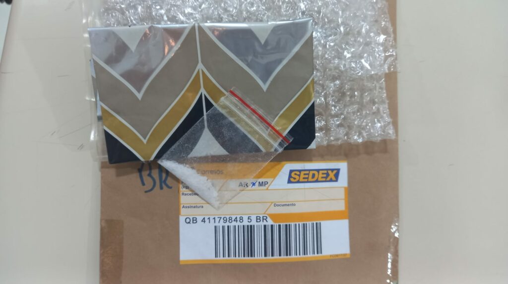 Na embalagem havia metanfetamina. Cada grama da droga custa cerca de R$ 500. Trata-se de uma substância considerada cara e rara na região.