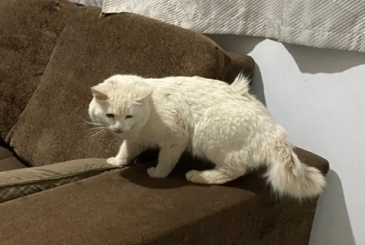 Ela disse que o gato foi encontrado perto do Kaskata, em frente as lanche do Gibi, por volta da meia-noite. Claudia o levou para casa, mas informou não poder ficar com o bichinho, pois já tem outros gatos e está gestante.