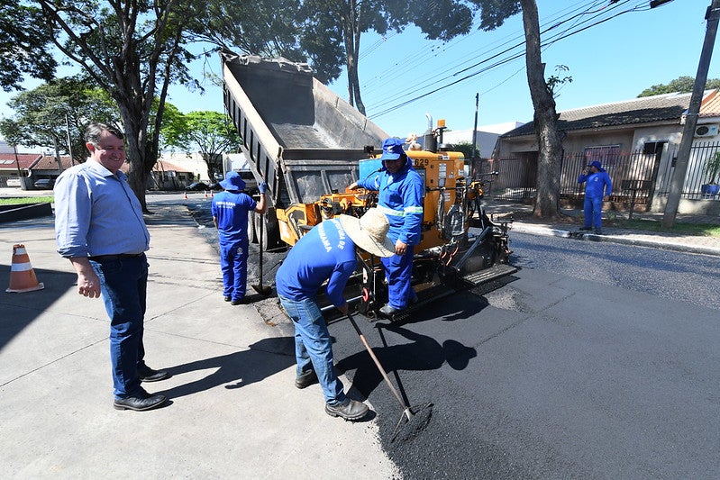 A equipe da Secretaria Municipal de Obras recapeou mais um trecho de via pública de Umuarama na sexta-feira (16). O prefeito Hermes Pimentel acompanhou pessoalmente a execução do serviço, da rua Cuiabá (Zona V), entre as avenidas Rio Grande do Norte e Anhanguera, na Praça Anchieta.