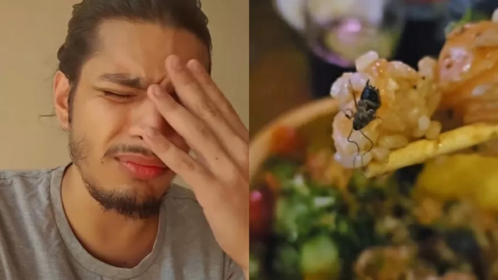26/01/2025 às 17:56 Jovem vai a restaurante e é surpreendido com barata viva na comida. O que você faria?
