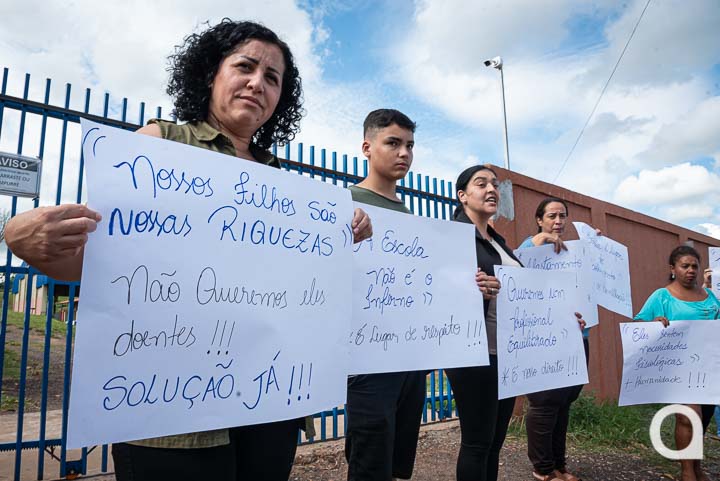 14/04/2023 às 16:23 Pais protestam em frente a Escola Municipal Evangélica e pedem saída de professora de artes e religião