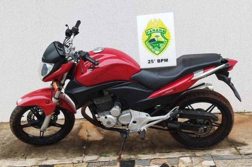 ABANDONADA 25/08/2025 às 19:20 Após denúncia, PM localiza moto sem placa e com irregularidades na zona rural de Iporã