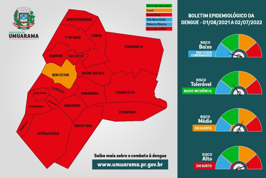 ALERTA MÁXIMO 01/07/2022 às 18:57 Umuarama registrou mais 180 casos de dengue; município está em surto da doença