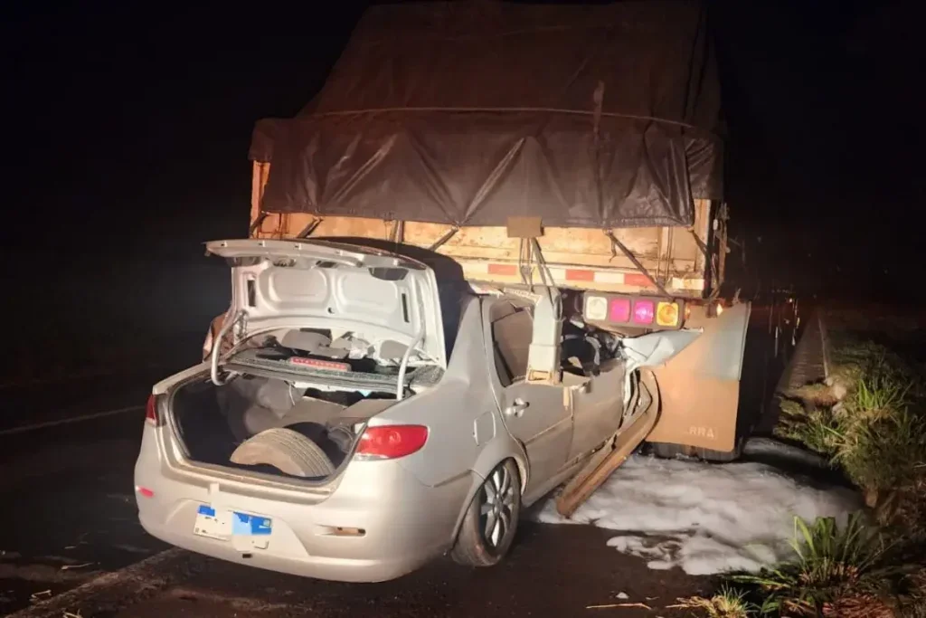 ALTO PARANÁ 14/04/2025 às 12:29 Motorista fica gravemente ferido em colisão entre carro e carreta na BR-376