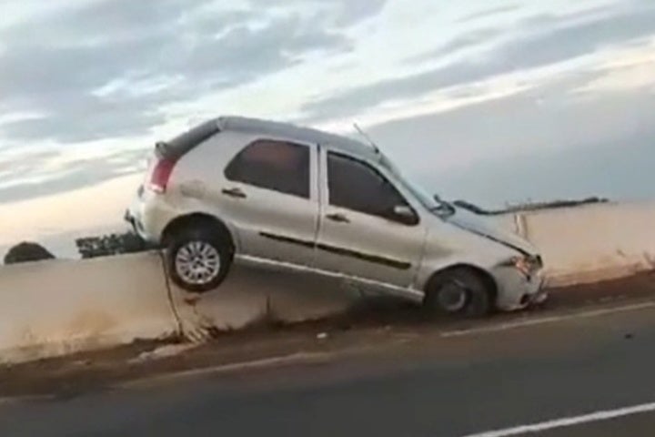 APÓS ACIDENTE 05/03/2024 às 14:36 Condutor escapa ‘por um triz’ de cair de viaduto no Contorno Norte de Maringá