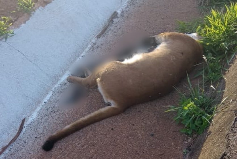 ATROPELADA 25/10/2025 às 21:48 Condutor encontra onça-parda morta na BR-487, entre Cruzeiro e Tuneiras do Oeste