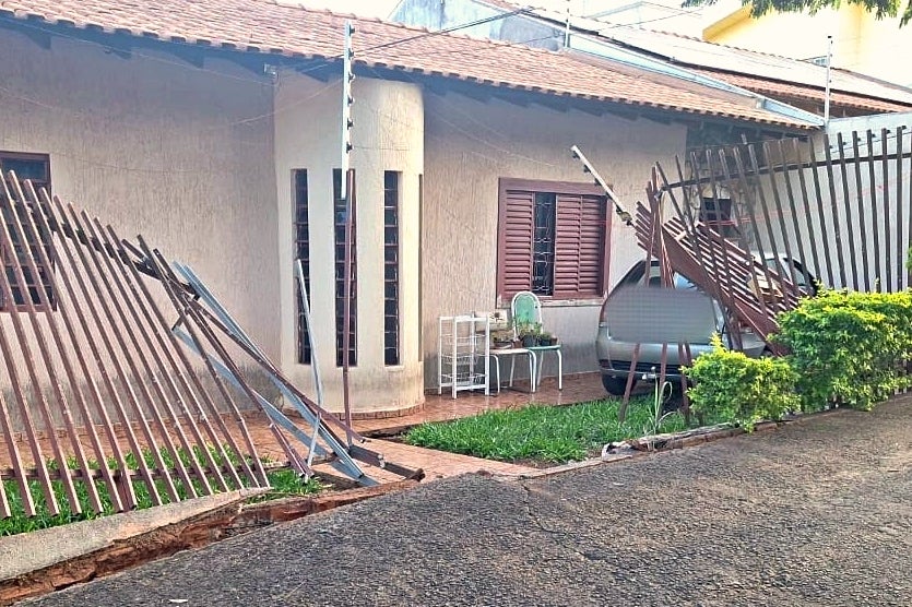 AUTO X ANTEPARO 24/05/2025 às 18:51 Umuarama: Condutor bate em portão e invade quintal de casa ao desviar de outro veículo