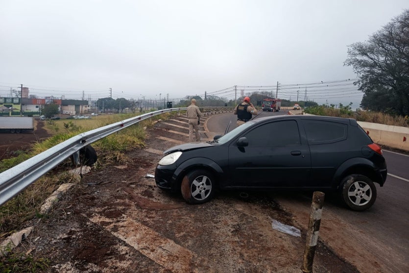 AUTO X ANTEPARO 04/05/2025 às 14:58 Perobal: Motorista fica ferido após colisão na trincheira de acesso à PR-323