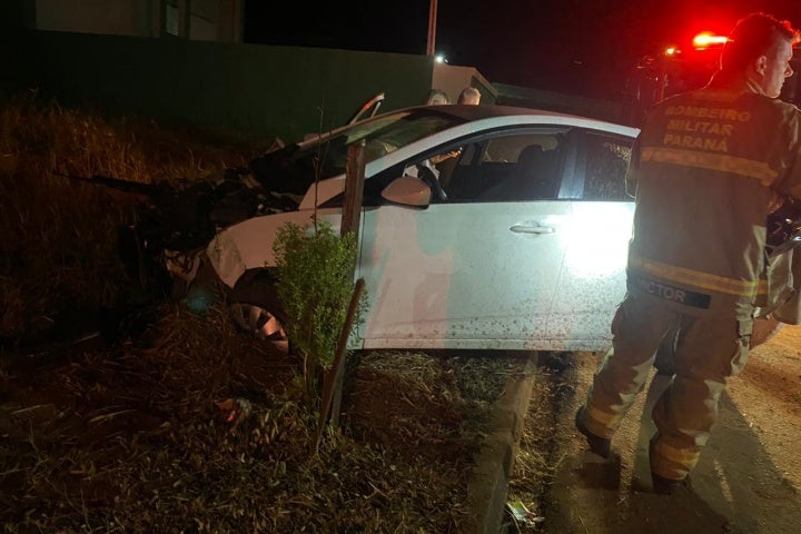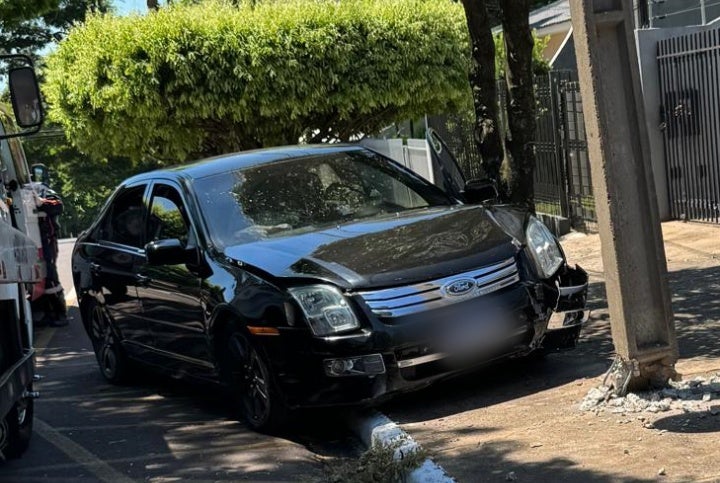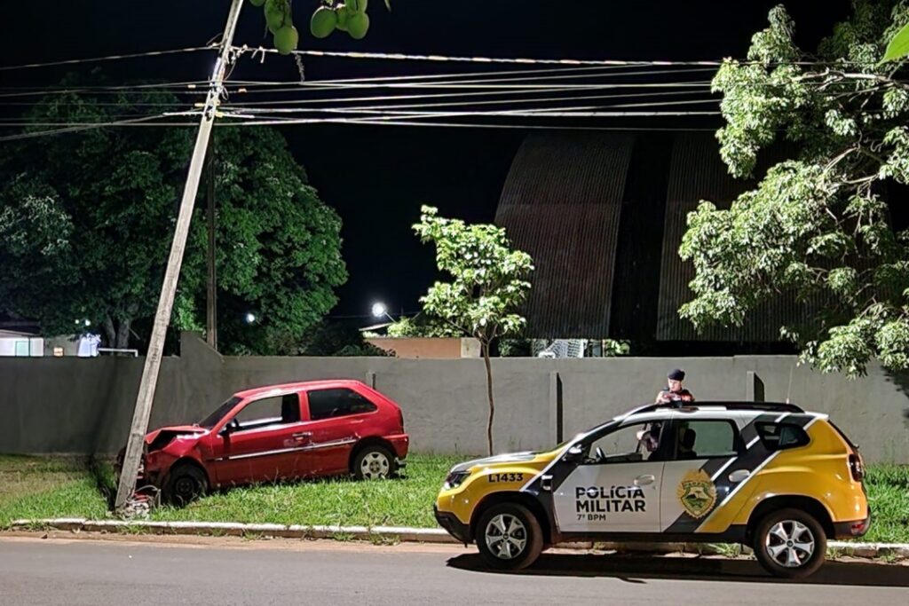 AUTO X ANTEPARO 08/12/2023 às 21:42 Cruzeiro do Oeste: Condutor bate em poste na avenida Brasil e abandona carro
