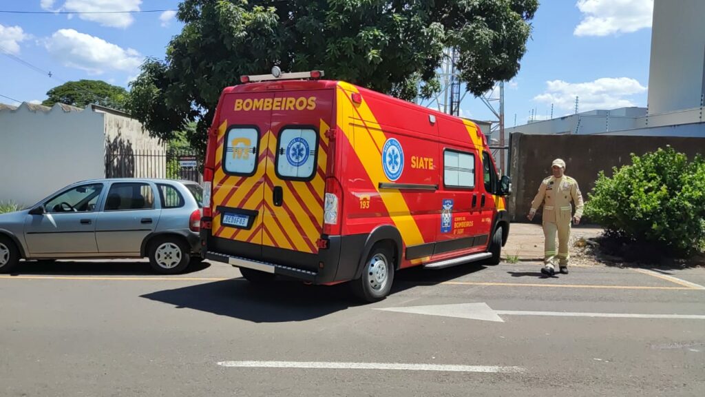 AUTO X BICICLETA 05/09/2023 às 13:15 Ciclista fica ferida após colidir em carro saindo de garagem na rua Amambai, em Umuarama