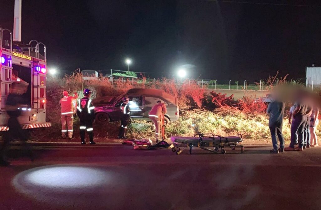 AUTO X CAMINHÃO 28/03/2023 às 10:39 Bombeiros são acionados para estabilizar carro para retirada de vítima após acidente em Altônia