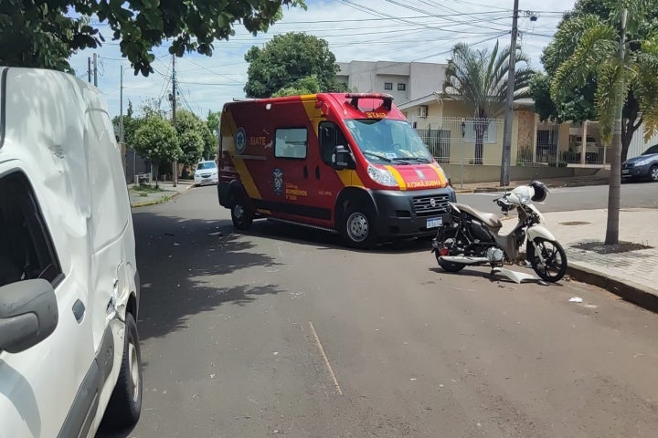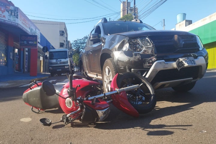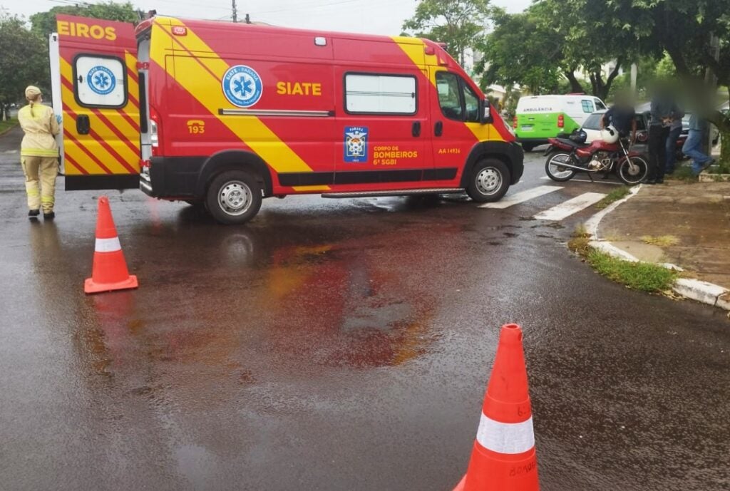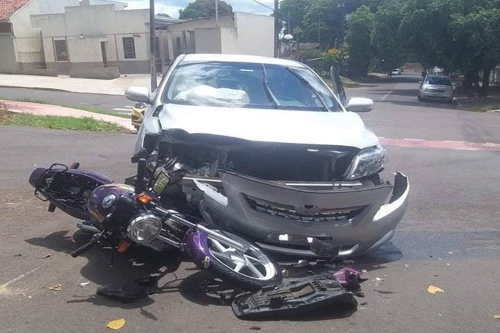 AUTO X MOTO 06/02/2023 às 12:07 Condutora de moto fica ferida em acidente no cruzamento da Av. São Paulo com Rua Maranhão, em Umuarama